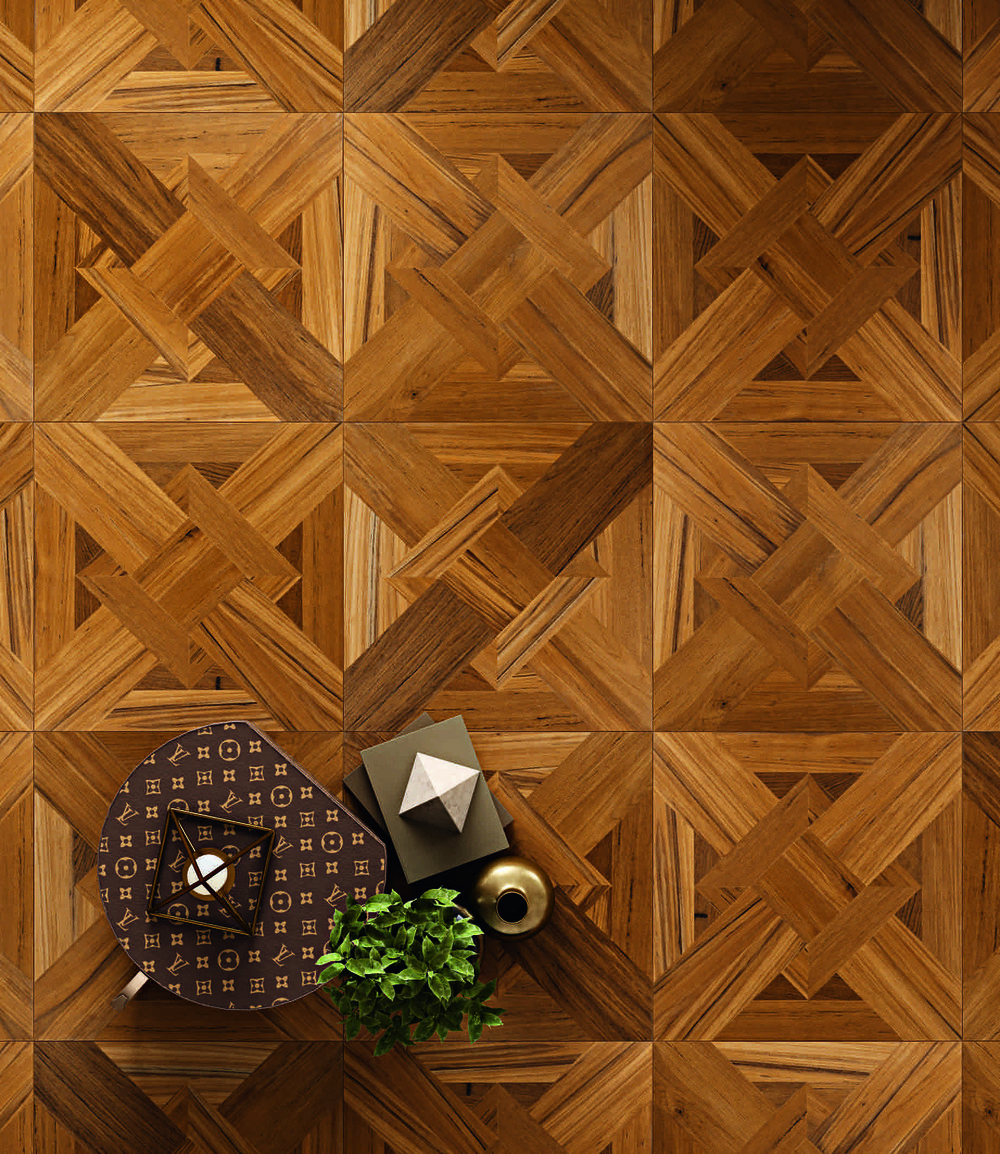 Diseño Fiesole en madera de Teka Burma. Colección Quadrotte CP Parquet.