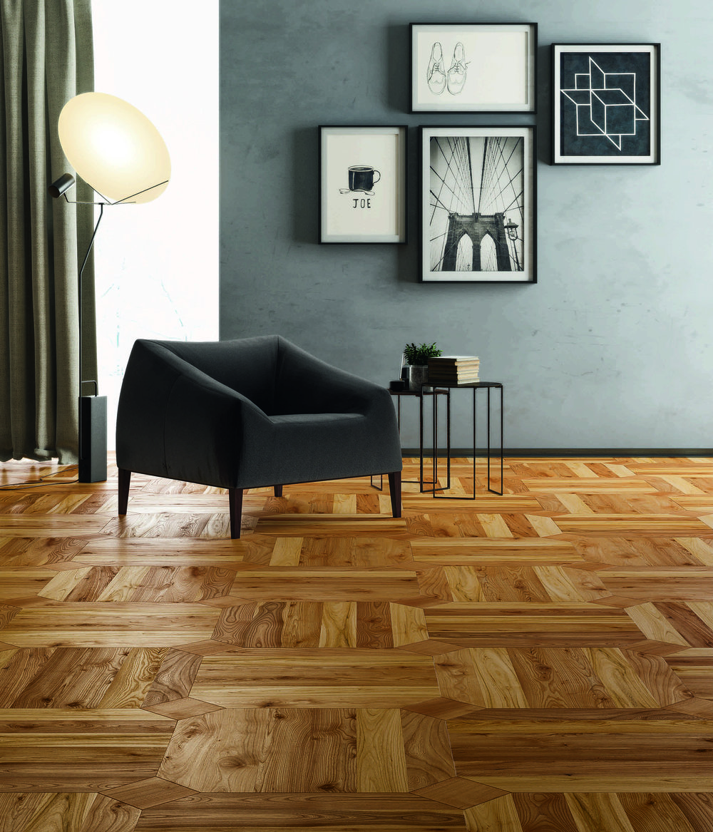 Diseño Follonica en madera de olmo europeo. Colección Quadrotte CP Parquet.