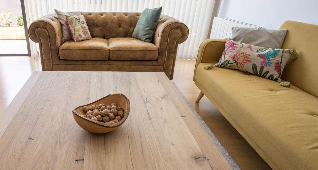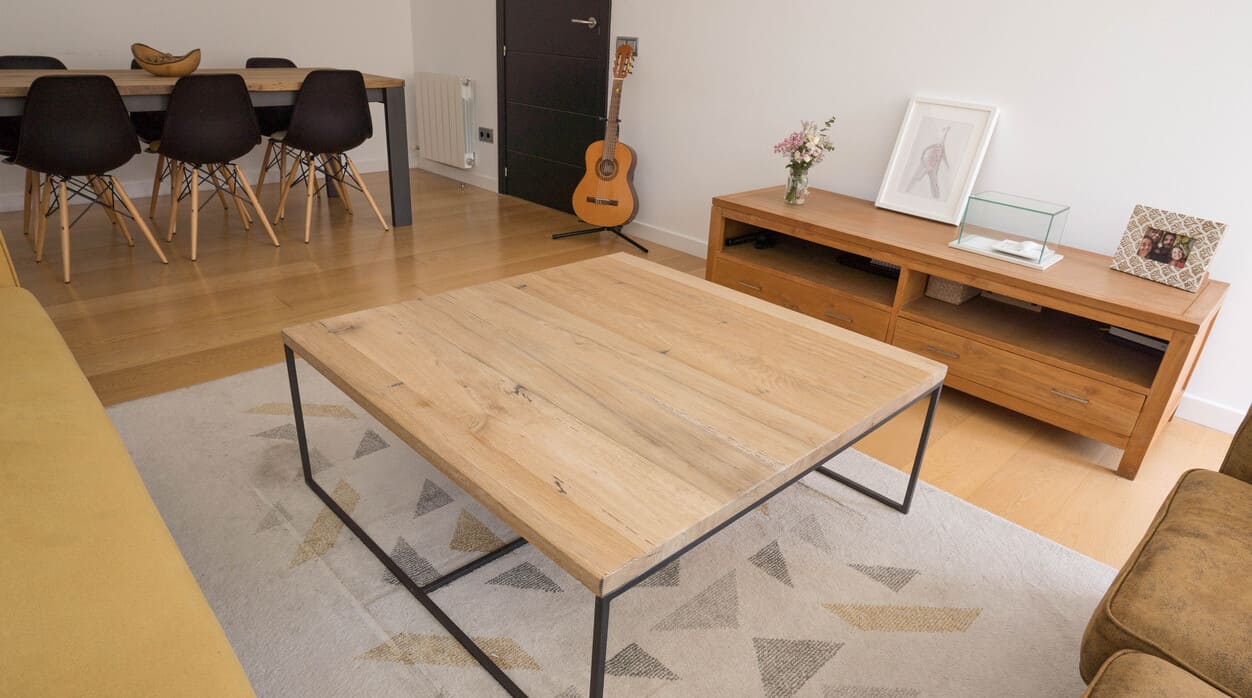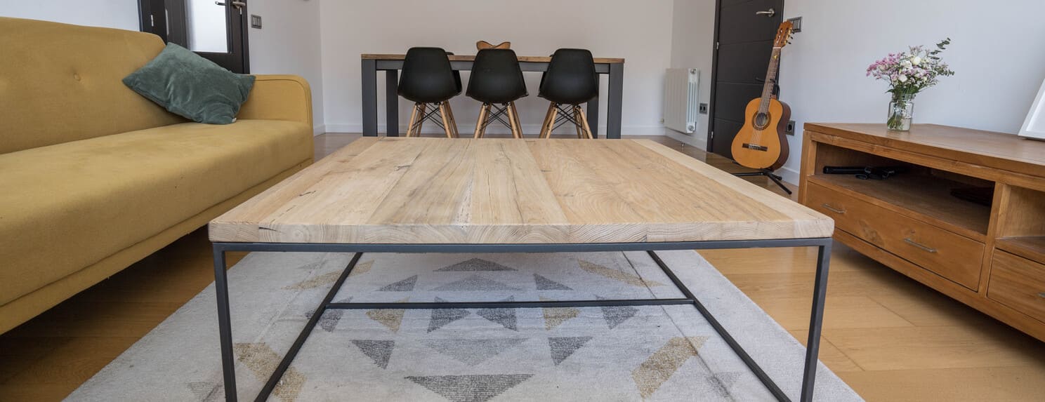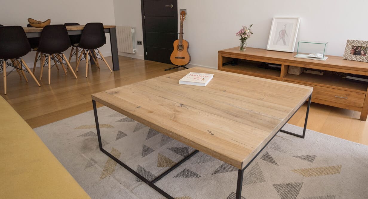 Mesa de centro roble recuperado 105 x 105 cm